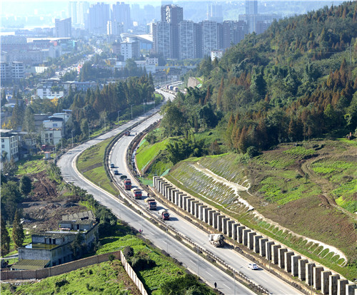 國(guó)道318線雅安至二郎山——雅安城區(qū)過境段(北外環(huán)線)項(xiàng)目是“4·20”蘆山強(qiáng)烈地震災(zāi)后重建民生項(xiàng)目。該工程起于姚橋新區(qū)雅洪公路交叉口,東連省道305線,沿光華山西側(cè)、金鳳山南側(cè)布置,穿青鼻山隧道,順碉堡山南側(cè)修建,止于康藏路西端,順接國(guó)道108線和318線,道路全長(zhǎng)11.8公里,總投資11.96億元。道路設(shè)計(jì)為雙向4車道,設(shè)計(jì)時(shí)速60Km/h,,道路寬度從17米至49米不等。