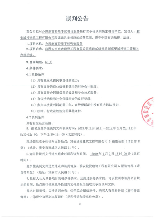 辦理剝離資質(zhì)手續(xù)咨詢服務(wù)競爭性談判公告