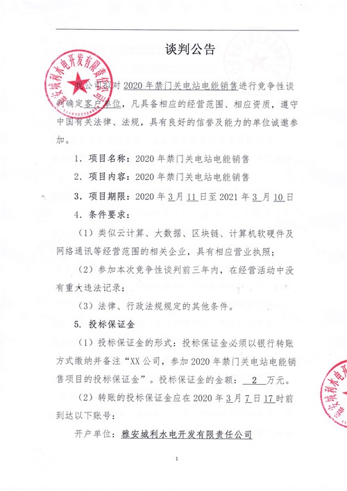 2020年禁門(mén)關(guān)電站電能銷(xiāo)售競(jìng)爭(zhēng)性談判公告