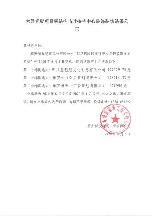 城投建工公司大興壹號(hào)項(xiàng)目鋼結(jié)構(gòu)臨時(shí)接待中心裝飾裝修詢(xún)價(jià)函結(jié)果公示