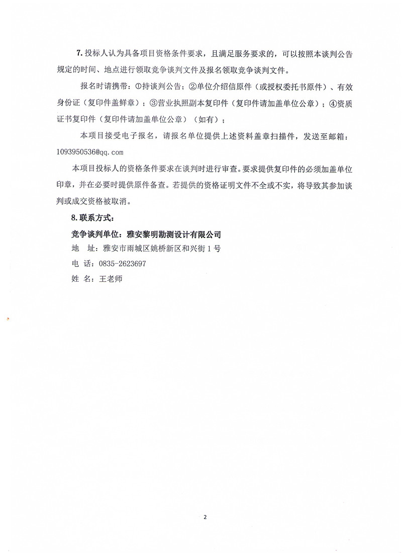 雅安黎明勘測(cè)設(shè)計(jì)有限公司測(cè)量設(shè)備采購(gòu)競(jìng)爭(zhēng)性談判公告
