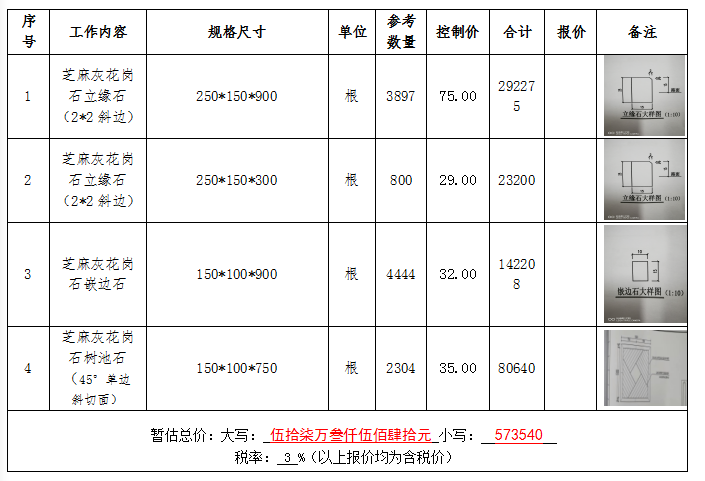 注:1、單價單位為元,單價為含稅單價,稅率不得低于3%。