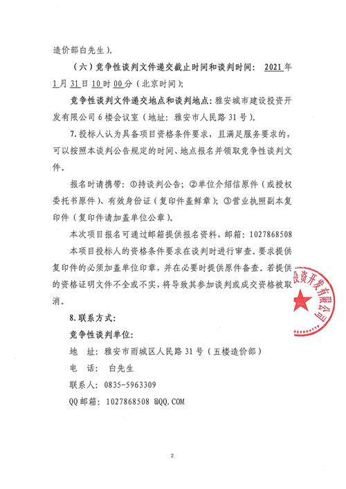 雅安城市建設(shè)投資開發(fā)有限公司辦公樓食堂外包競(jìng)爭(zhēng)性談判公告