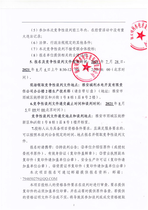 城利水電公司滎經(jīng)縣羅家灣電站大壩注冊(cè)登記工作相關(guān)資料編制競(jìng)爭(zhēng)性談判公告
