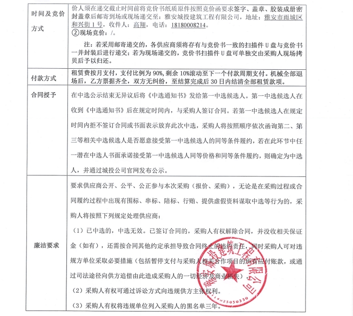 寶興靈關(guān)保障性租賃住房建設(shè)項(xiàng)目(二期)挖掘機(jī)等機(jī)械租賃競價公告