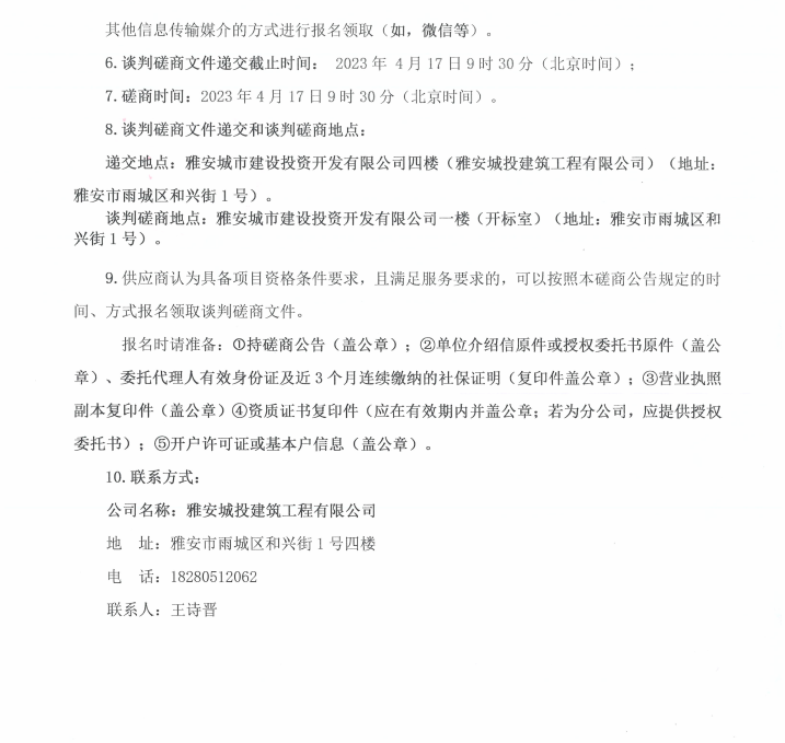 雅安市西康記憶生態(tài)文旅街區(qū)項目一號地塊項目EPS制作與安裝工程(第二次)采購談判磋商公告