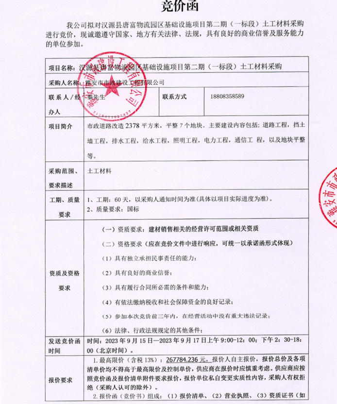 漢源縣唐富物流園區(qū)基礎(chǔ)設(shè)施項(xiàng)目第二期(一標(biāo)段)土工材料采購(gòu)競(jìng)價(jià)公告