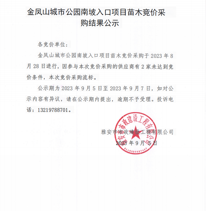 金鳳山城市公園南坡入口項目苗木采購競價采購結(jié)果公示