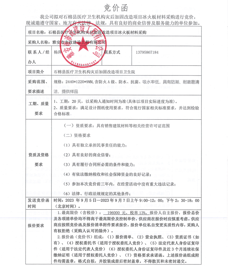石棉縣醫(yī)療衛(wèi)生機(jī)構(gòu)災(zāi)后加固改造項(xiàng)目冰火板材料采購(gòu)競(jìng)價(jià)公告
