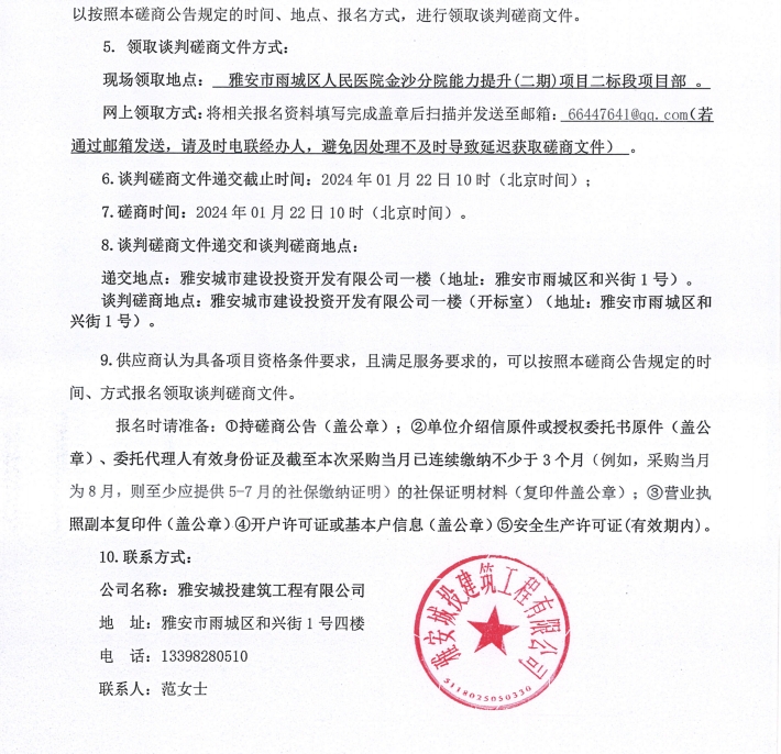 雅安市雨城區(qū)人民醫(yī)院金沙分院能力提升(二期)項(xiàng)目二標(biāo)段人造石材料(第二次)采購(gòu)談判磋商公告