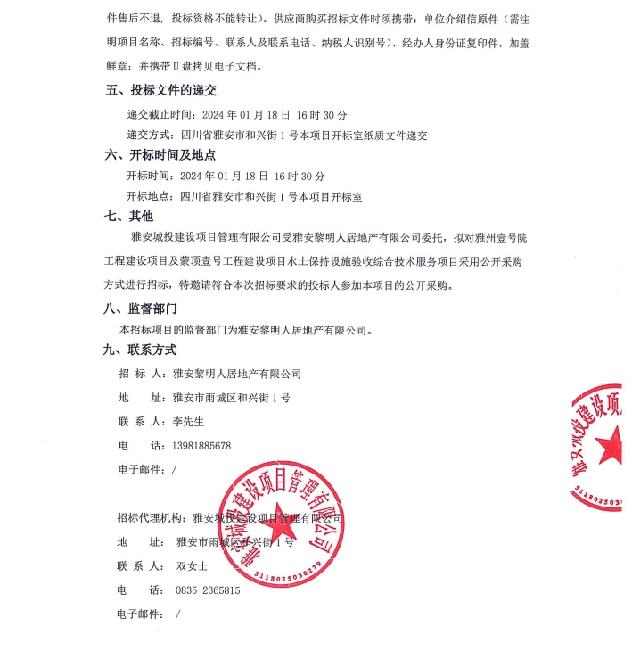 雅州壹號(hào)院工程建設(shè)項(xiàng)目及蒙頂壹號(hào)工程建設(shè)項(xiàng)目水土保持設(shè)施驗(yàn)收綜合技術(shù)服務(wù)項(xiàng)目公告
