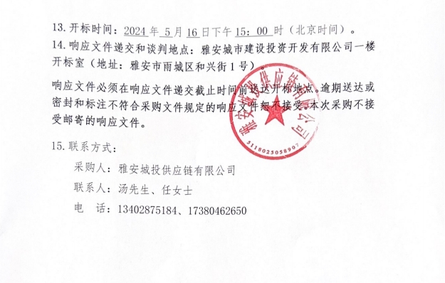 2024年5月至2025年4月雅安城投供應(yīng)鏈有限公司年度防火門、入戶門采購(gòu)公告