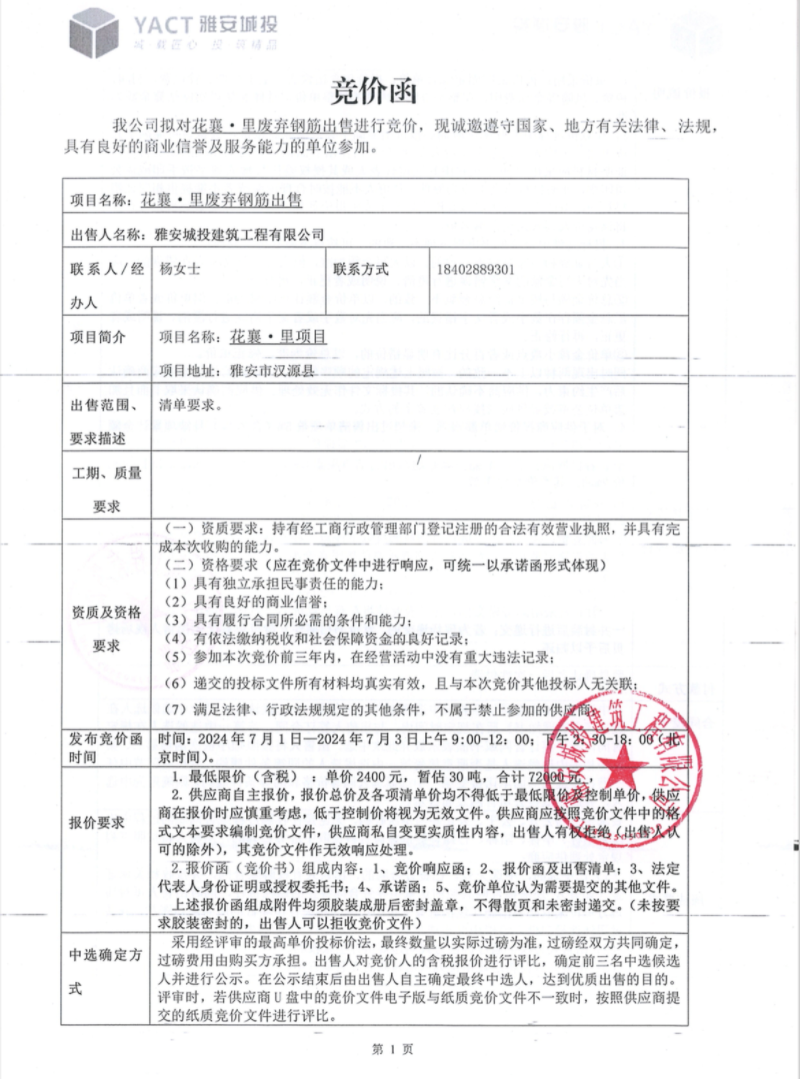 花襄·里廢棄鋼筋出售競(jìng)價(jià)公告