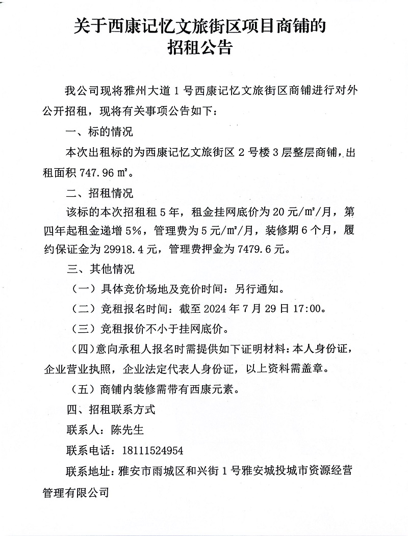 關(guān)于西康記憶文旅街區(qū)項(xiàng)目商鋪的招租公告