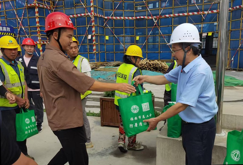 7月22日,四川省總工會黨組成員、副主席苗勇一行,赴城投公司承建的雅安市工人文化宮項(xiàng)目現(xiàn)場開展夏季“送清涼”慰問活動(dòng)。雅安市委常委、統(tǒng)戰(zhàn)部部長、市總工會主席李蓉,市總工會黨組書記、常務(wù)副主席趙雅玲等陪同慰問。