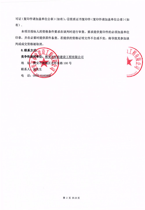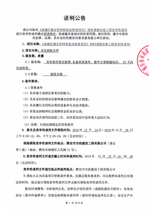 《雨城區(qū)城市管網(wǎng)和泵站恢復項目》材料采購安裝工程競爭性談判公告