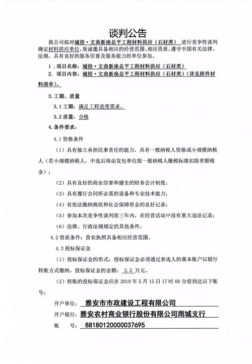 城投·文曲新座總平工程材料供應(yīng)(石材類(lèi))競(jìng)爭(zhēng)性談判公告