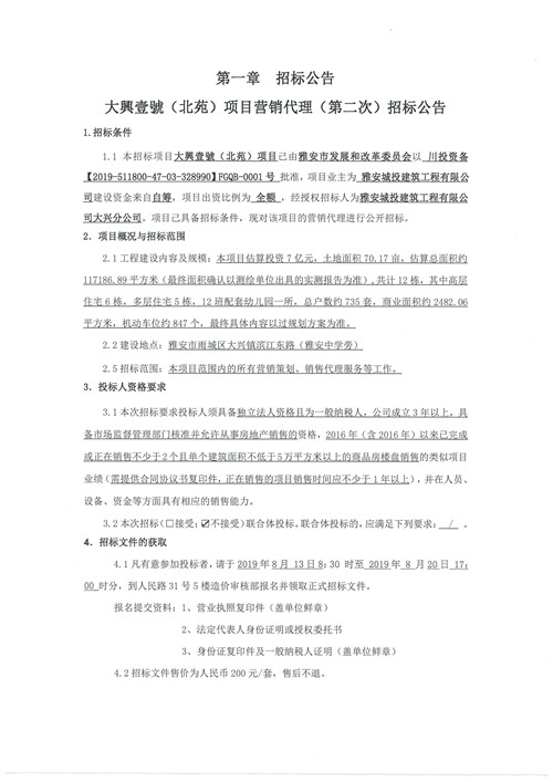 大興壹號(北苑)銷售招標(biāo)(第二次)招標(biāo)公告