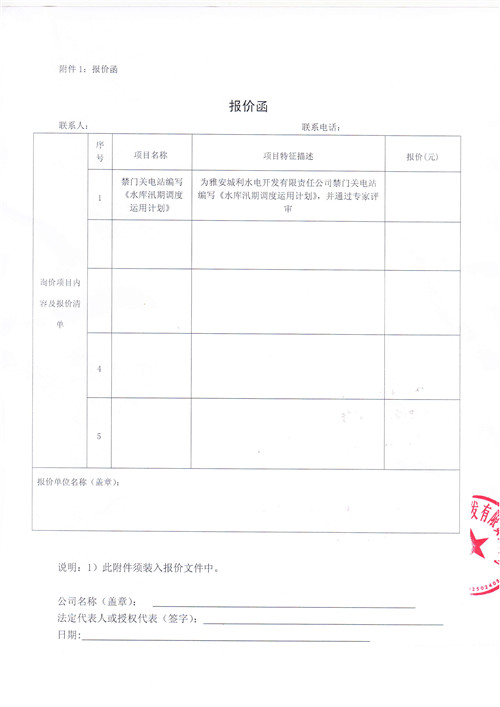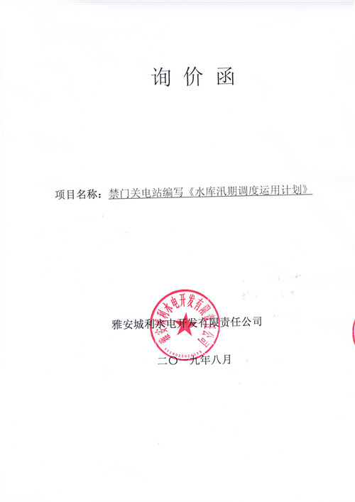 附件:詢價(jià)函(《水庫汛期調(diào)度運(yùn)用計(jì)劃》)