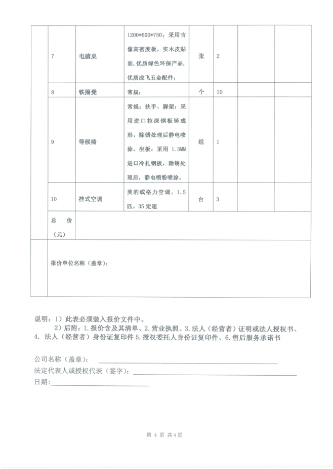 城投·文曲新座物業(yè)管理用房辦公家具采購詢價函