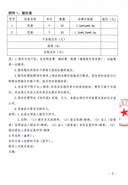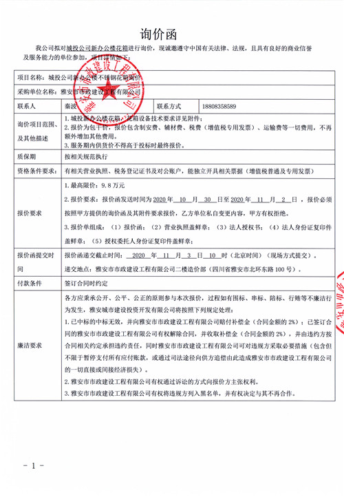 城投公司新辦公樓花箱詢價函