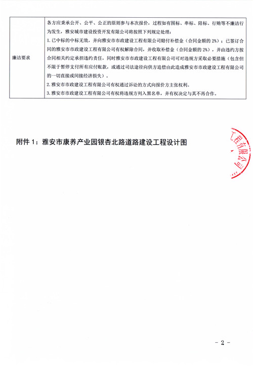 雅安市康養(yǎng)產業(yè)園銀杏北路道路建設工程主體檢測服務詢價函