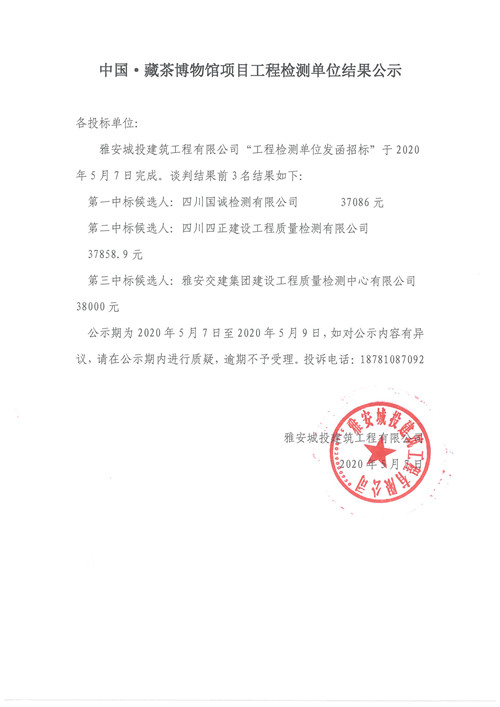 城投建工公司中國·藏茶博物館項目工程檢測單位結(jié)果公示