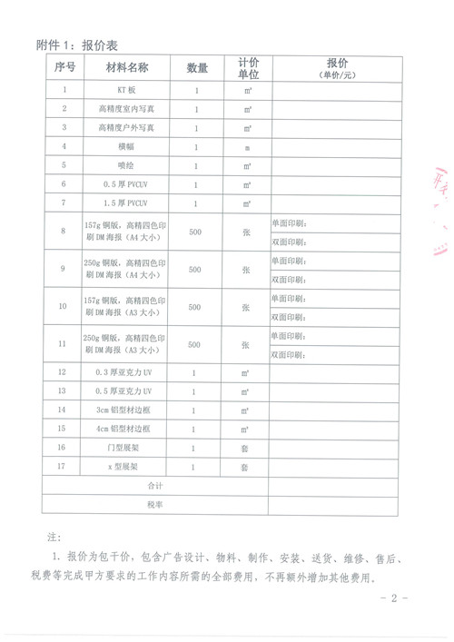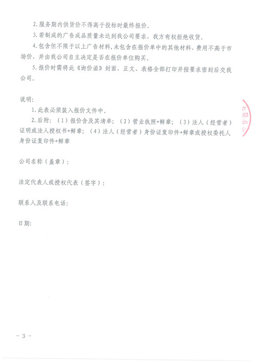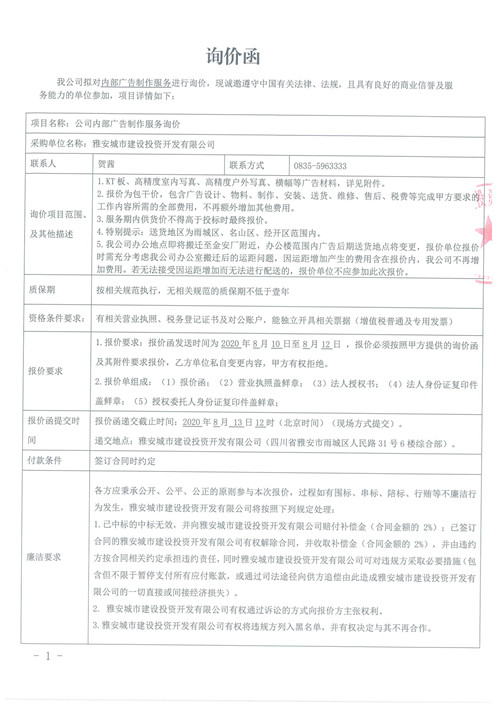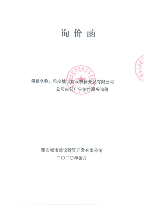 雅安城市建設(shè)投資開發(fā)有限公司公司內(nèi)部廣告制作服務(wù)詢價(jià)函