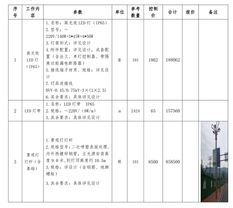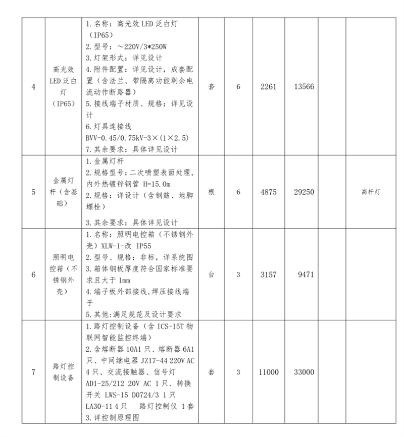 2.1項(xiàng)目?jī)?nèi)容:雅安文教新城市政道路恢復(fù)重建項(xiàng)目(一標(biāo)段)照明工程材料采購(gòu)供貨商的確定,保障市政公司相關(guān)工程的順利進(jìn)行,具體貨物見材料清單(本招標(biāo)文件所附清單(數(shù)量、規(guī)格、種類)僅供參考,最終采購(gòu)數(shù)量實(shí)際發(fā)生(分散采購(gòu))的為準(zhǔn))。