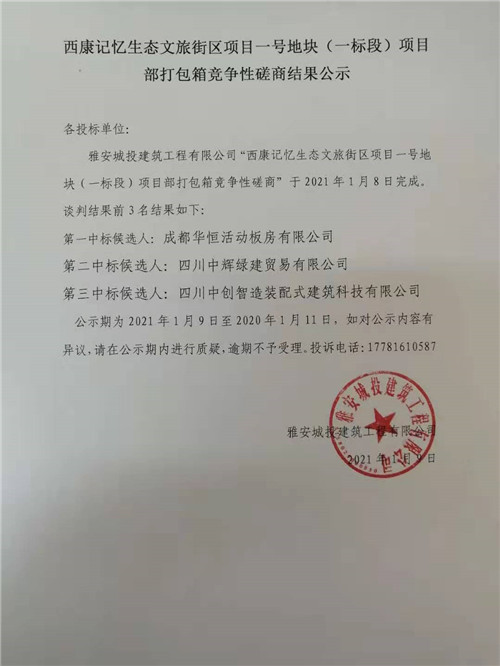 西康記憶生態(tài)文旅街區(qū)項(xiàng)目一號(hào)地塊(一標(biāo)段)項(xiàng)目部打包箱競(jìng)爭(zhēng)性磋商結(jié)果公示