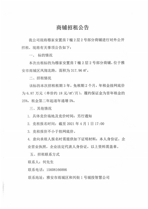 穆家安置房7幢2層2號(hào)商鋪招租公告