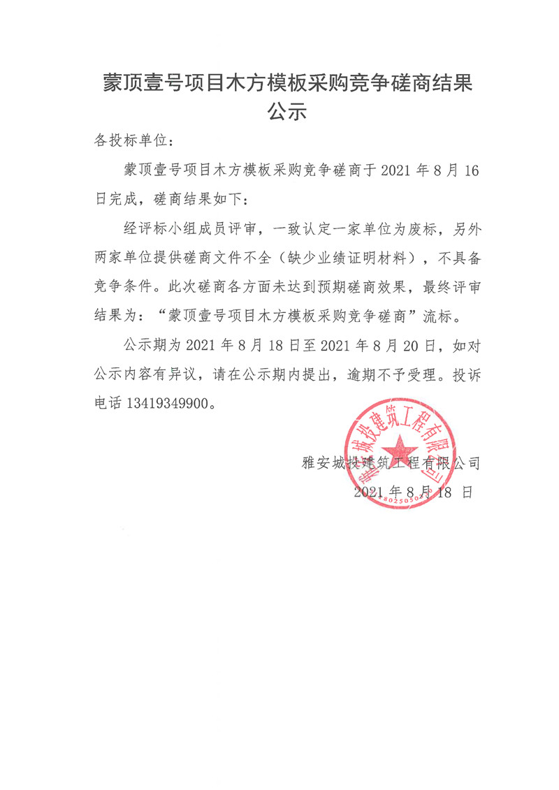 城投建工公司蒙頂壹號項目木方模板采購競爭磋商結(jié)果公示