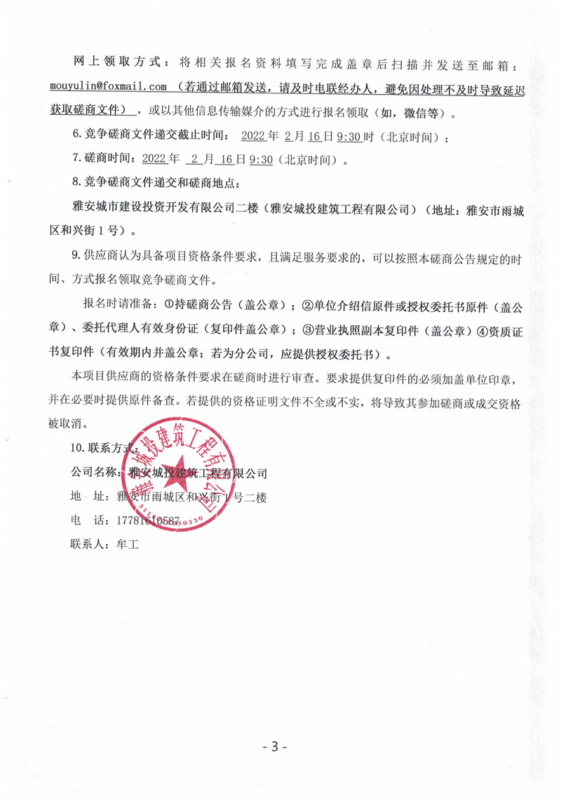 蒙頂壹號項目懸挑工字鋼采購競爭磋商公告(第二次)