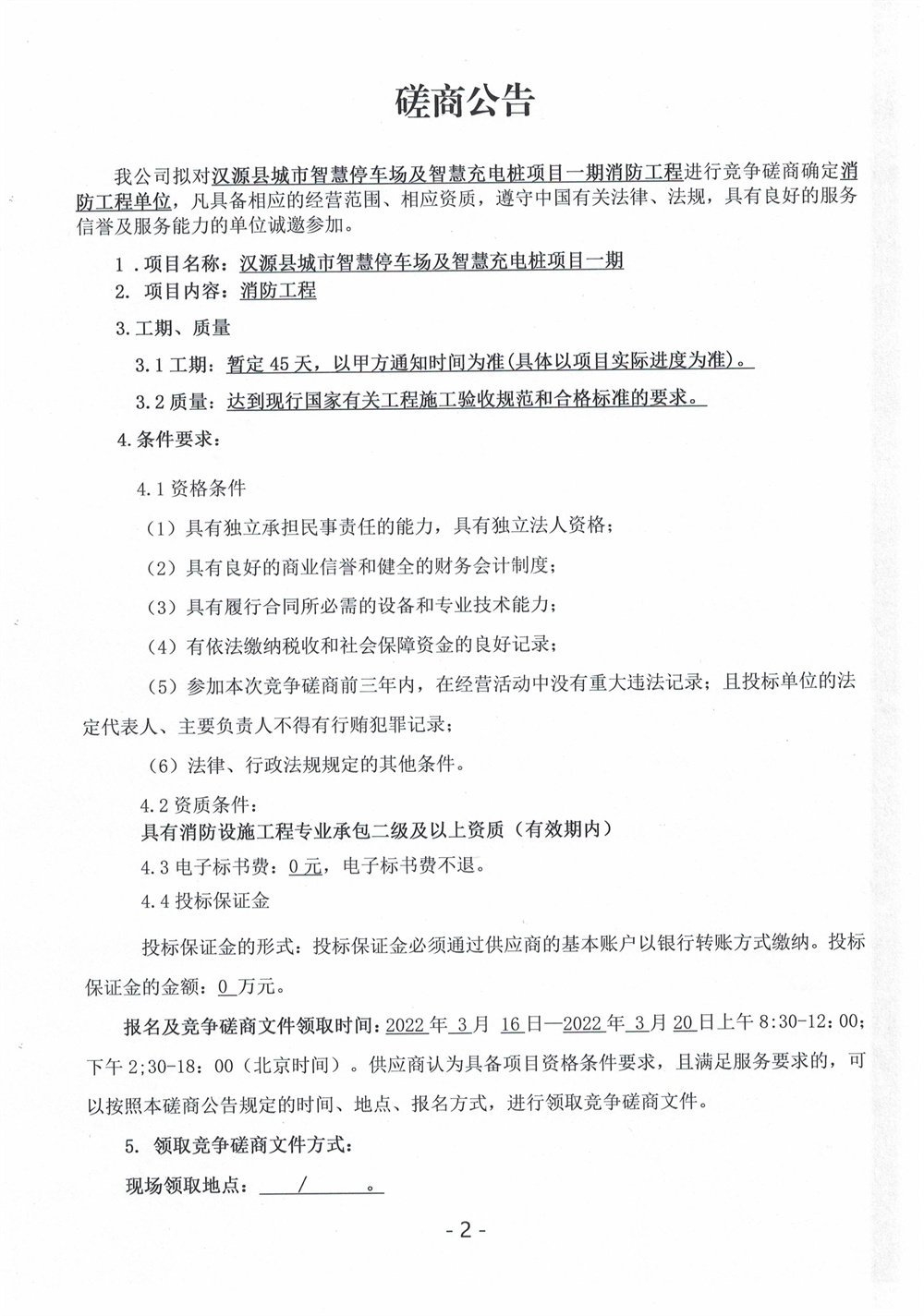 漢源縣城市智慧停車場(chǎng)及智慧充電樁項(xiàng)目一期消防工程磋商公告