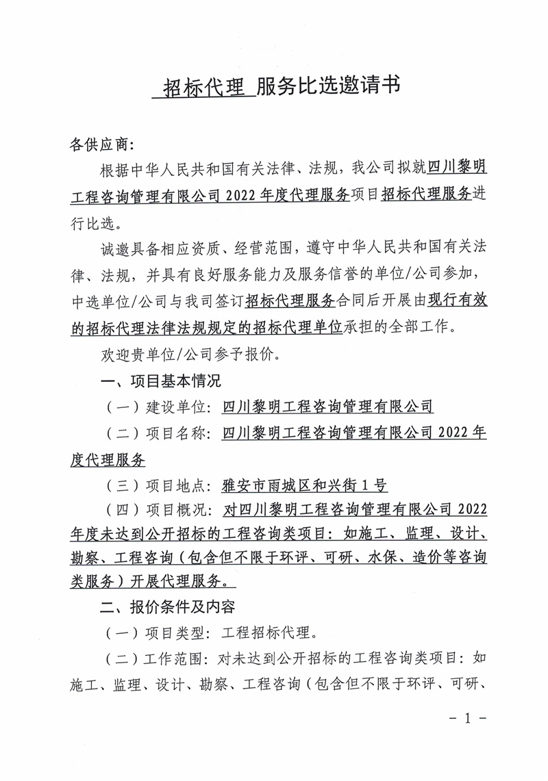 四川黎明工程咨詢管理有限公司2022年度代理服務(wù)