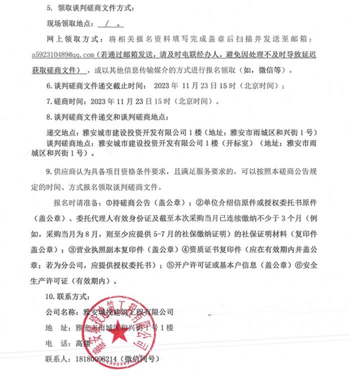 寶興靈關(guān)保障性租賃住房建設(shè)項(xiàng)目(二期)吊籃租賃談判磋商公告