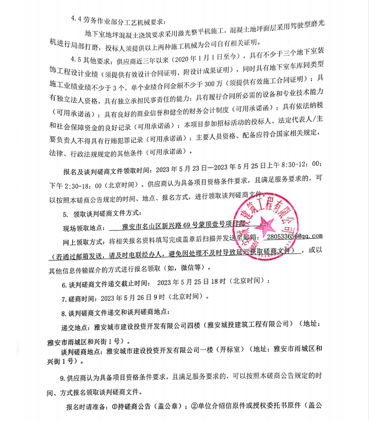 蒙頂壹號項目地下室車庫裝飾工程建設采購談判磋商公告