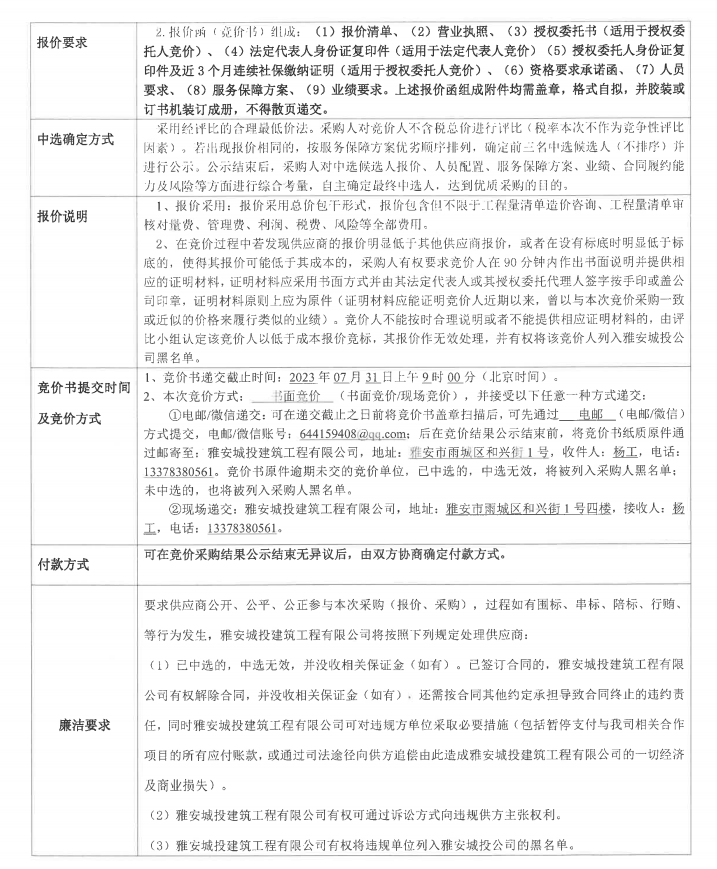 雅安市雨城區(qū)人民醫(yī)院能力建設(shè)二期項目工程量清單造價咨詢競價公告