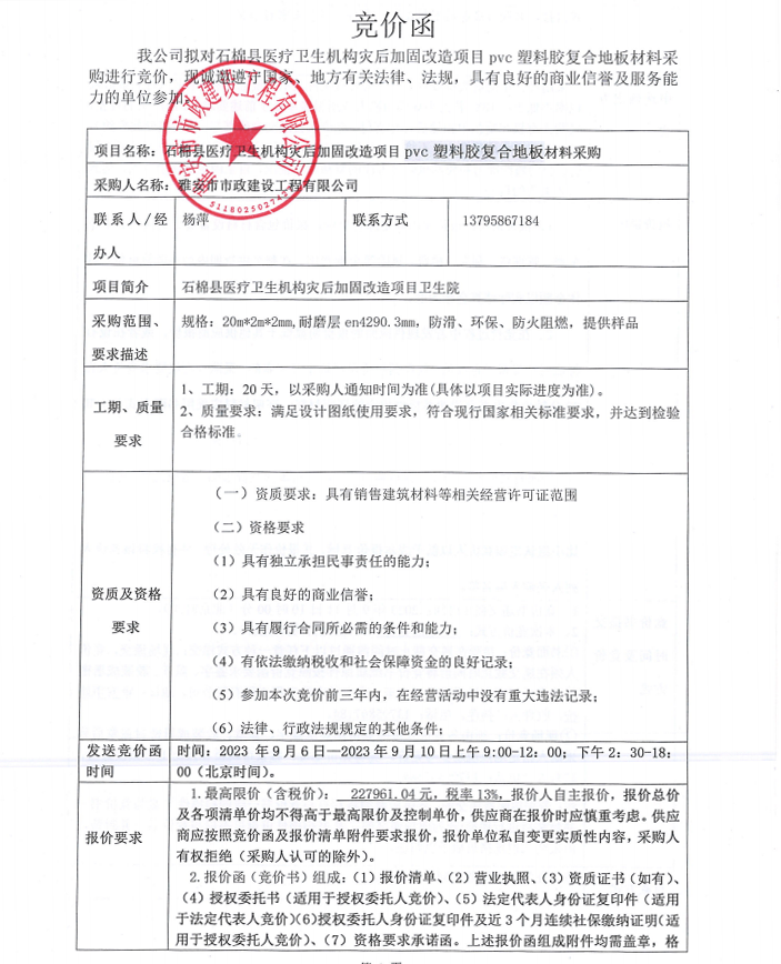 石棉縣醫(yī)療衛(wèi)生機(jī)構(gòu)災(zāi)后加固改造項(xiàng)目pvc塑料膠復(fù)合地板采購(gòu)競(jìng)價(jià)公告