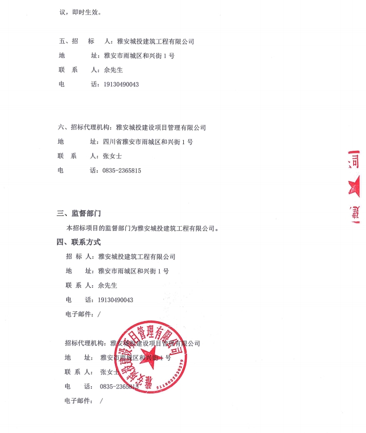 雅州壹號院項目架管周轉材料租賃服務采購項目(第二次)中標結果公告