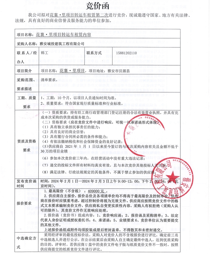花襄·里項(xiàng)目轉(zhuǎn)運(yùn)車租賃(第二次)競(jìng)價(jià)公告