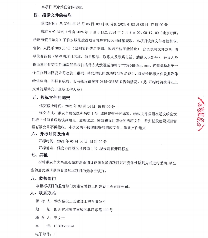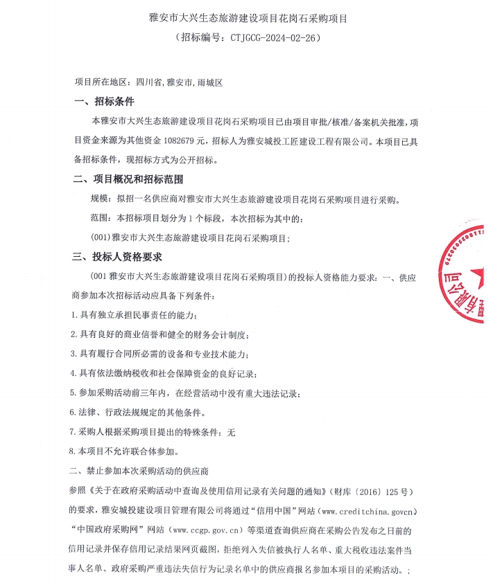 雅安市大興生態(tài)旅游建設(shè)項目花崗石采購項目公告