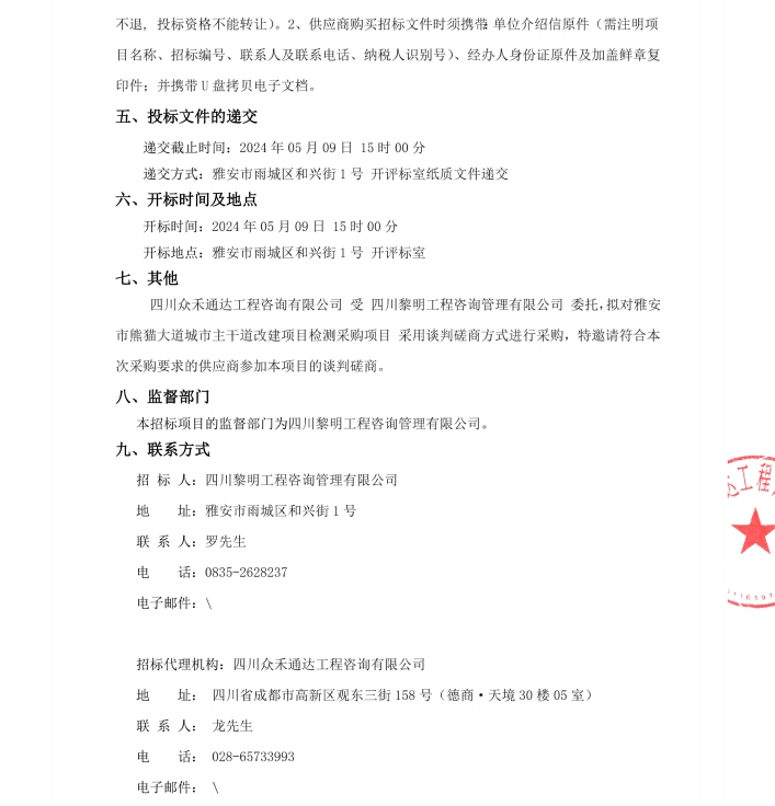 雅安市熊貓大道城市主干道改造項(xiàng)目檢測(cè)采購項(xiàng)目公告