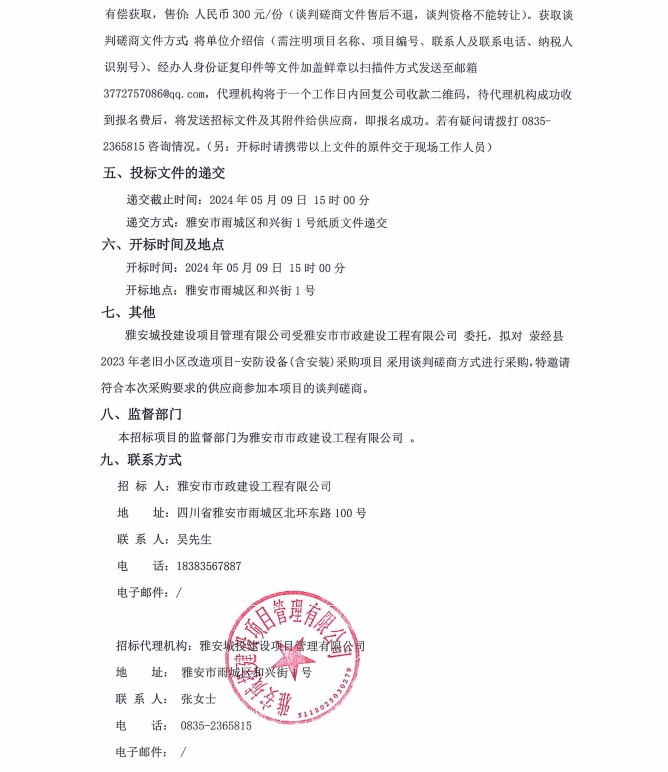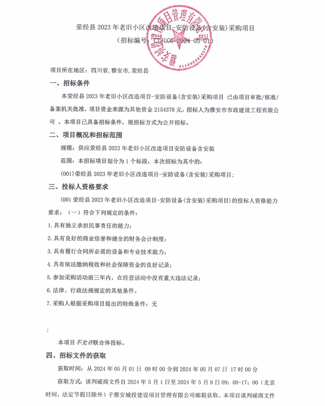 滎經縣2023年老舊小區(qū)改造項目安防設備(含安裝)采購項目公告