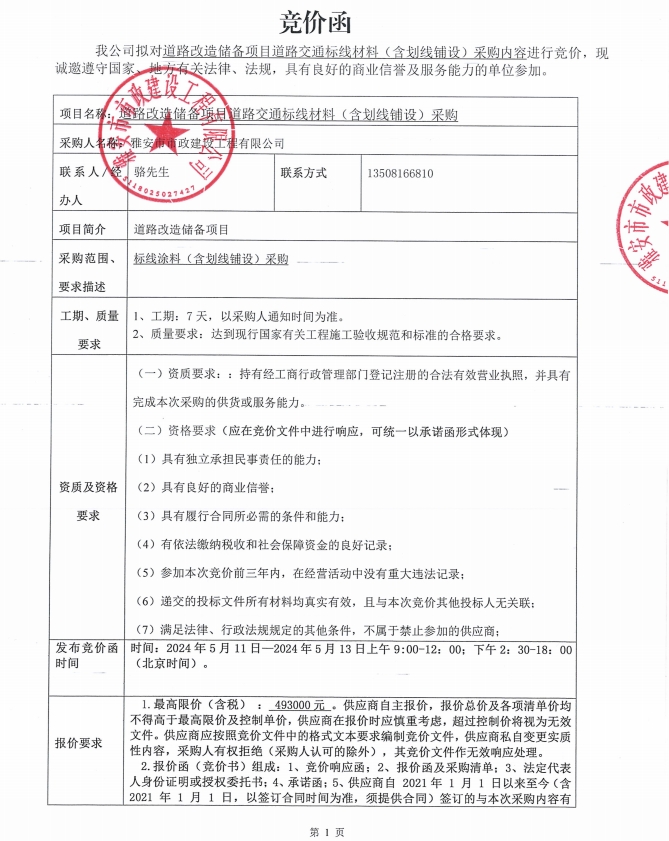 道路改造儲(chǔ)備項(xiàng)目道路交通標(biāo)線材料(含劃線鋪設(shè))采購(gòu)競(jìng)價(jià)公告