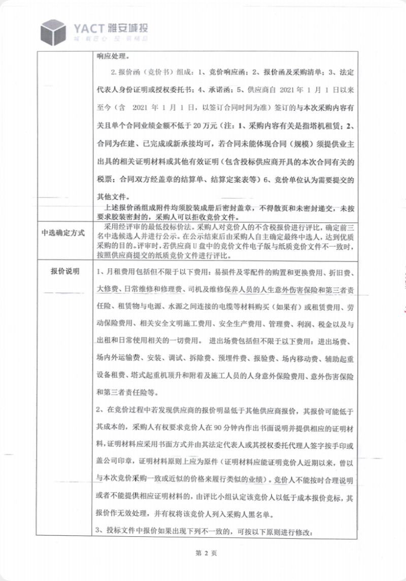 石棉縣大熊貓國家公園保護(hù)管理設(shè)施項(xiàng)目(一期)塔機(jī)租賃(第二次)競價公告